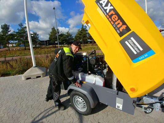 Publicerad: 28/9, 2019Ny kompressor på vagn samt en luftdriven bergborr. Kompressorn är registrerad för 80km/h & väger endast 750kg & levererar 5m3/min