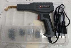Värmehäftaren (Hot Stapler) hettar upp stift som sedan smälts in i plasten och bryggar sprickan/fogen man vill laga så att man sen kan spackla, slipa och måla över. Levereras med stift i 4 olika modeller för att passa varje unik reparation. Effekt: 50 W.