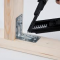 Använd pistolens spets för att hitta beslagshålet och tryck pistolens näsa mot beslaget. Ankarspikpistolen slår i spiken med en rad korta slag och med sin säkerhet är det ingen risk för rikoschett.
