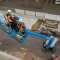 Genie S65XC 4-hjulsdriven bomlift med stor framkomlighet, utrustad med svängbar jibb. Kan köras på mark från korg.